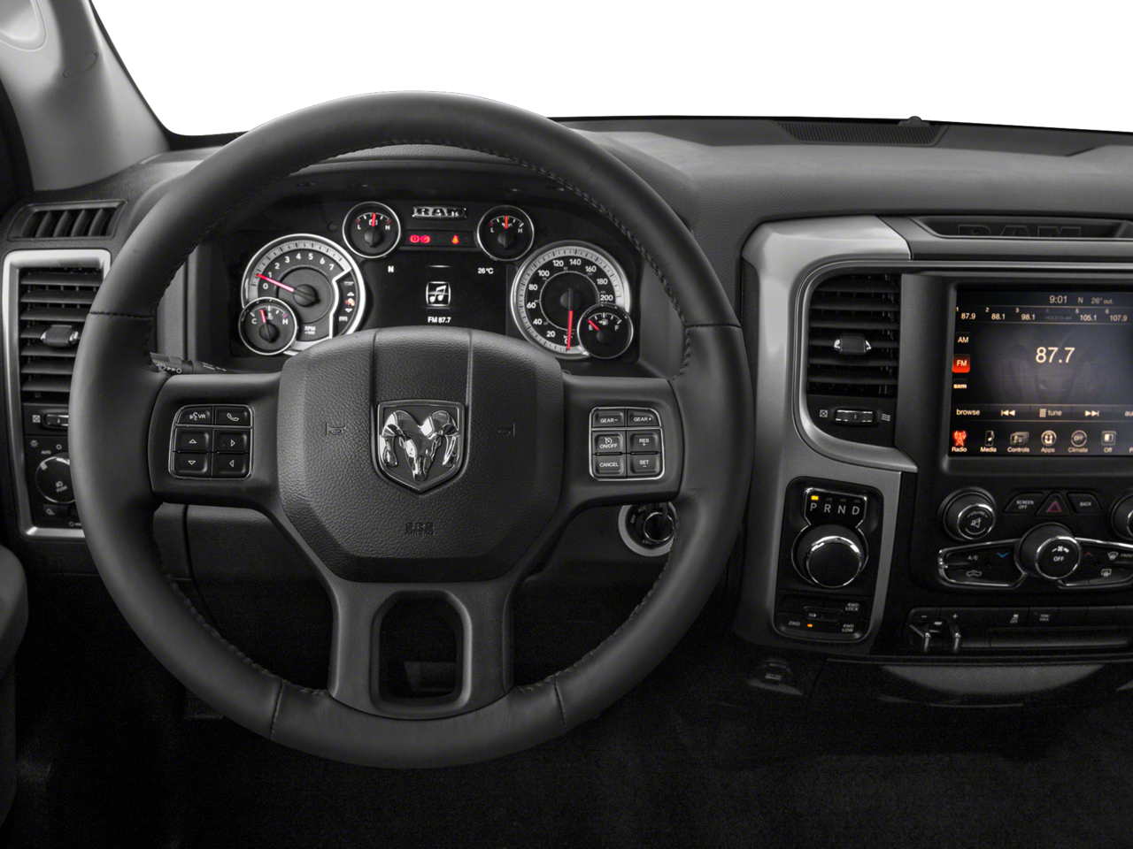 115V Auxiliary Power Outlet, 4 Adjustable Cargo Tie-Down Hooks, 40/20/40 Split Bench Seat, 6 Month Trial (Reg. Required), 6 Month Trial (Registration Required), 8.4 Touchscreen Display, Air Conditioning ATC w/Dual Zone Control, Audio Jack Input for Mobile Devices, Auto-Dimming Exterior Mirrors, Auto-Dimming Rear-View Mirror, Bed Cargo Divider/Extender, Big Horn Badge, Big Horn Regional Package, Bright/Bright Billets Grille, Charge Only Remote USB Port, Class IV Receiver Hitch, Dual Rear Exhaust w/Bright Tips, Electric Shift-On-Demand Transfer Case, Electroluminescent Instrument Cluster, Exterior Mirrors Courtesy Lamps, Exterior Mirrors w/Supplemental Signals, Fog Lamps, Folding Flat Load Floor Storage, For Details Visit DriveUconnect.com, Front Armrest w/3 Cupholders, Front Center Seat Cushion Storage, Glove Box Lamp, GPS Antenna Input, Integrated Voice Command w/Bluetooth®, Leather Wrapped Steering Wheel, LED Bed Lighting, Media Hub (USB, AUX), Nav-Capable! See Dealer for Details, Overhead Console w/Garage Door Opener, ParkSense Front/Rear Park Assist System, ParkView Rear Back-Up Camera, Power 10-Way Driver Seat, Power Heated Fold-Away Mirrors, Power Lumbar Adjust, Power-Folding Mirrors, Premium Cloth 40/20/40 Bench Seat, Quick Order Package 26S Big Horn, Radio: Uconnect 3C w/8.4 Display, RamBox Cargo Management System, Rear 60/40 Split Folding Seat, Rear Dome w/On/Off Switch Lamp, Remote Start System, Remote USB Port, Security Alarm, SIRIUSXM Satellite Radio, Steering Wheel Mounted Audio Controls, Storage Tray, Sun Visors w/Illuminated Vanity Mirrors, Tilt steering wheel, Uconnect Access, Underhood Lamp, Universal Garage Door Opener, Wheels: 20 x 8 Aluminum Chrome Clad.